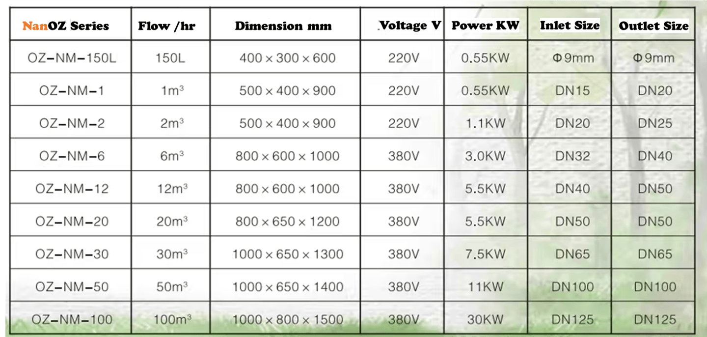 Integrated with air based ozone generator with nanobubble generator into combined system